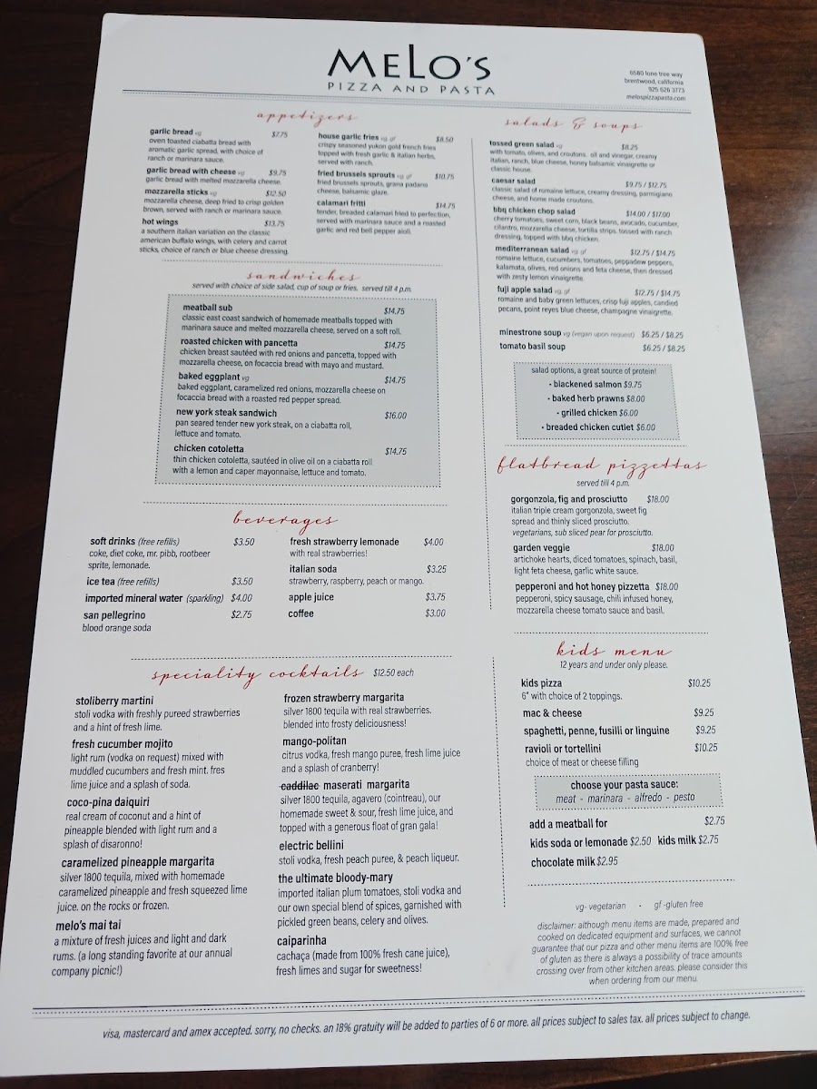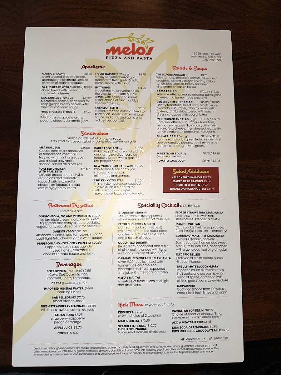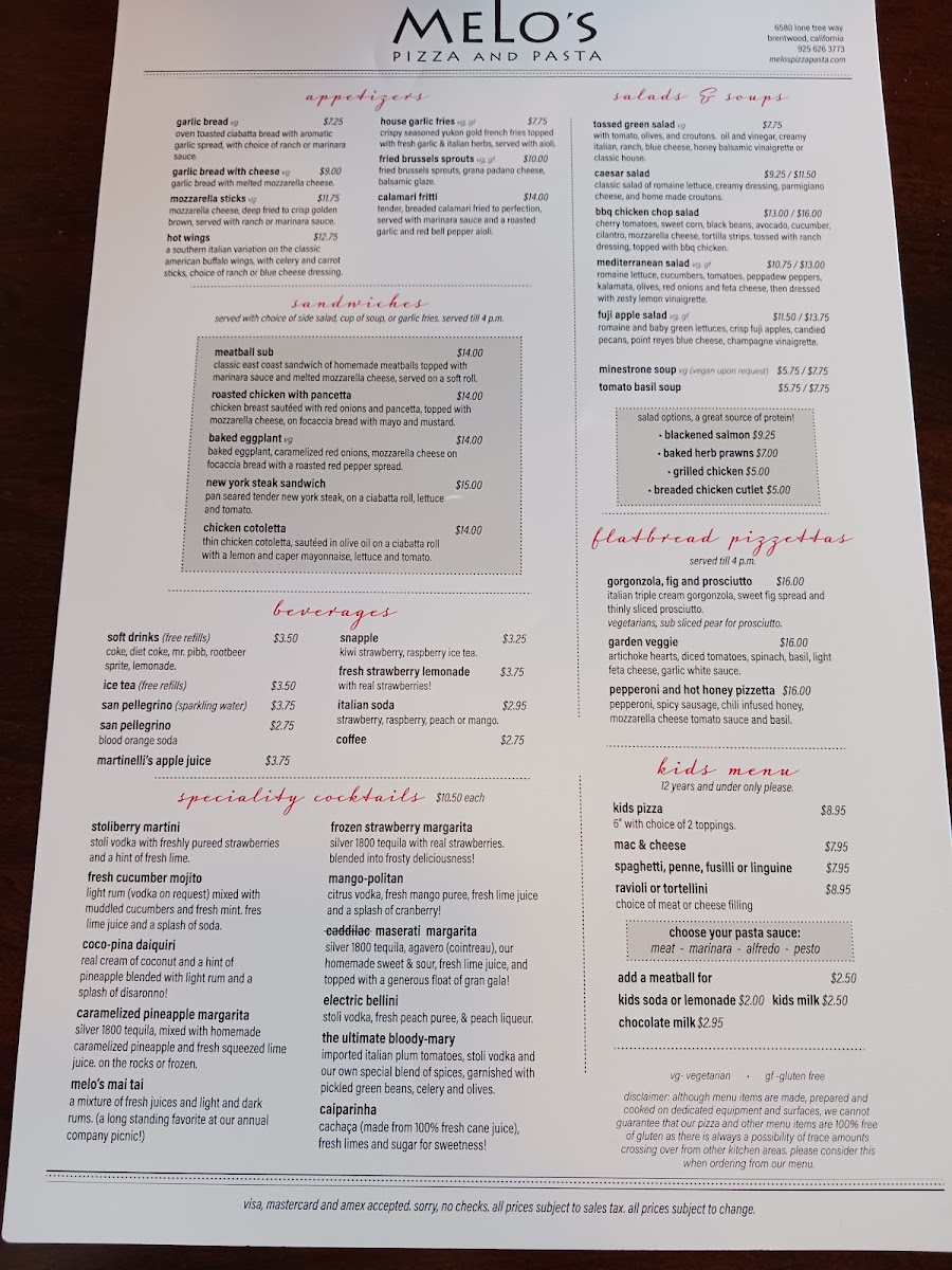 If you're searching for a fantastic spot to indulge in mouthwatering pizza and delectable Italian cuisine, look no further than Melo's Pizza, located at 6580 Lone Tree Way in Brentwood, CA. This inviting pizza restaurant promises an authentic dining experience that combines quality ingredients with a passion for great food. Whether you're coming in with family, grabbing a meal to go, or planning a casual date night, Melo’s has cultivated a warm and welcoming atmosphere that makes everyone feel at home.